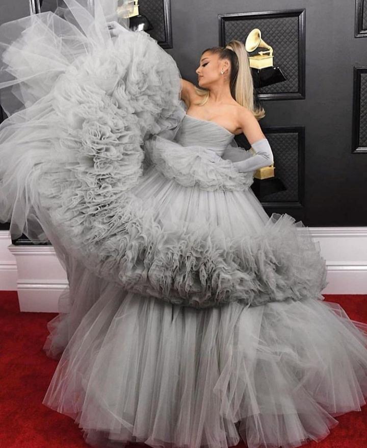 Kendisinden pek haz etmediğim, oldu olası ısınamadığım Ariana Grande 'nin Giambattista Valli imzalı elbisenine bayıldım ve kendisine çok yakıştırdım.