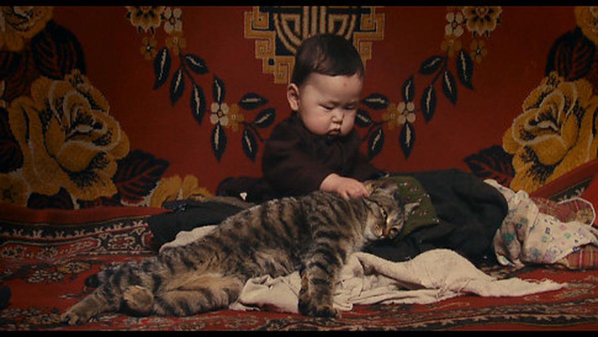 Moğol bebek ise, çadırda büyüyor, doğduğu andan beri bağlanan bebek diğer dört bebekten daha geç yürüyor. Annesi bebeğini yıkarken ağzıyla suyu ısıtıyor. Moğol bebeğin yıkandığı leğendeki sudan keçi su içiyor.
