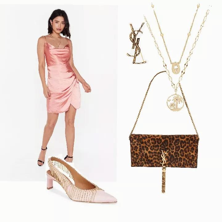 Saint Laurent'in şık baget çanta modelini, saten askılı şık bir elbise ve Area markasının sivri burun, taşlı şık ayakkabısı ile birleştirerek davetlere uygun bir kombin oluşturdum.