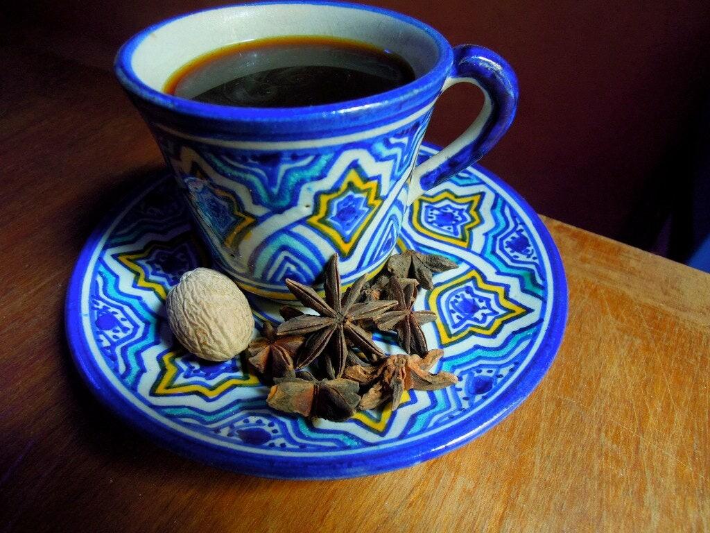 ● One of the most Morocco's most popular coffee varieties, "Cafe des epices" is prepared with ginger, cinnamon, cardamom, nutmeg, cloves, and black pepper. This coffee, which is said to have a strong taste, is prepared from a strong Moroccan blend.