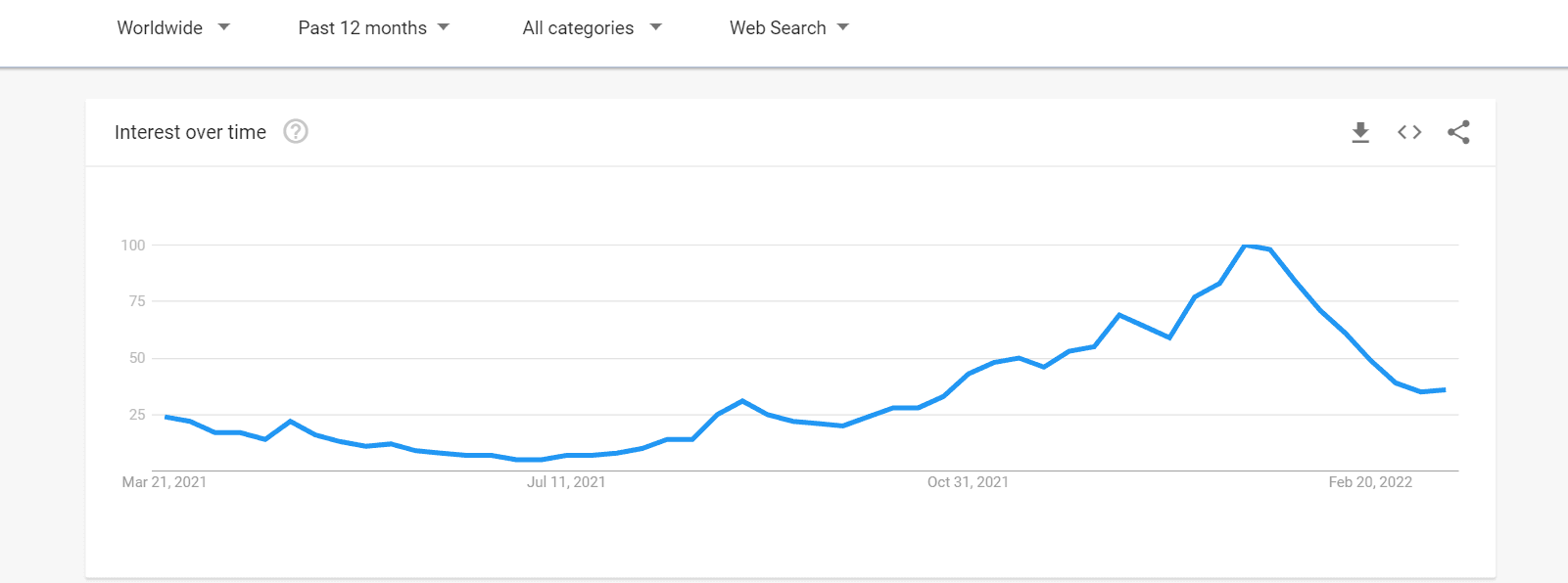 Yukarıda gördüğünüz tablo Google Trends aracılığıyla elde edebileceğiniz ve dünya çapında son 12 ay içerisindeki NFT arama miktarını gösteriyor. Bu tablodan açıkça görebileceğiniz üzere oldukça hızlı bir popülerite kaybı yaşayan NFT'ler için gelecek parlak olmayabilir.