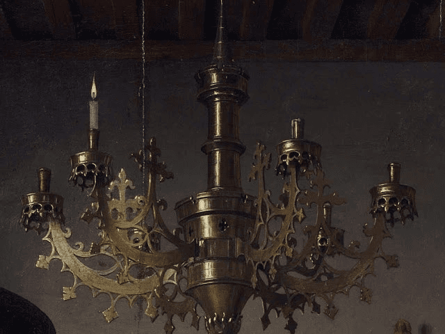 Portrenin en üst noktasında haç işlemeli avizede yalnızca bir adet mumun yanmakta olduğunu görüyoruz. Araştırmacılara göre bu mu Tanrı’nın her şeyi gören gözün simgesi olduğunu, bir başka yorum ise bu mumun tanrını ışığı, yaratıcının tek olduğunu simgelediği görüşü üzerindedir.