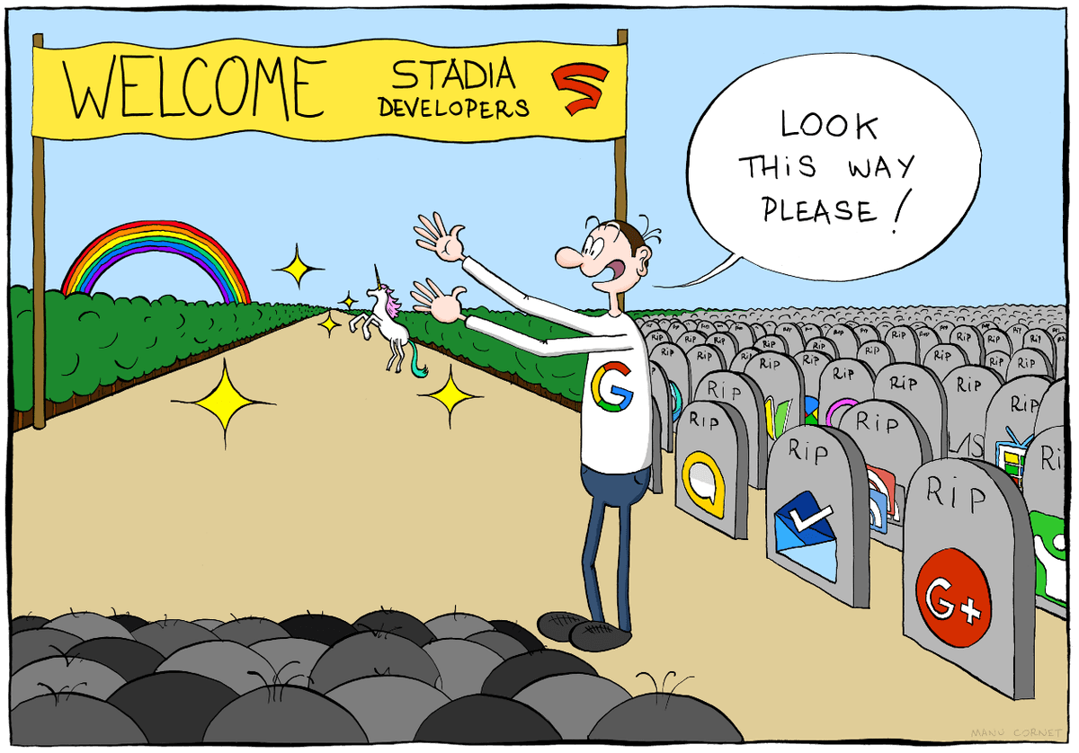 Stadia ne yazık ki Google'ın başarısız girişim mezarlığına giriş yaptı. Yurtdışında çokça geyiği yapılan Google şirketinin okadar çok başarısız girişimi var ki bunun için bir site yapılmış. Adını da Google Graveyard koymuşlar. Stadia konusuna gelecek olursak. Stadia platformu kullanıcılarından talep ettiği internet hızı ve bununla beraber oynamak istediğiniz çoğu oyunu satın almanızı gerektirdiği için oyuncular tarafından hoş karşılanmadı. Oyunları tabi ki satın alacağız diyebilirsiniz ancak burada demek istediğimiz, sizde zaten bulunan bir oyunu sırf Stadia üzerinde oynamak için tekrardan satın almanız gerekmesi. Bununla beraber ileride platformun kapatılması durumunda satın aldığınız bu oyunların sahipliğini korumanız için bir yol yok çünkü Stadia, Steam gibi dijital bir oyun pazarı değil. Tabi bu durumda açıldığı andan itibaren suyun içinde çırpınmak zorunda kalan Stadia birkaç yıldır kendisini kurtarmaya çalışıyordu. Ancak oyuncu sayıları gitgide azalmaya devam etti ve Google platforma oyun yapması için kurduğu stüdyolarını kapattı.