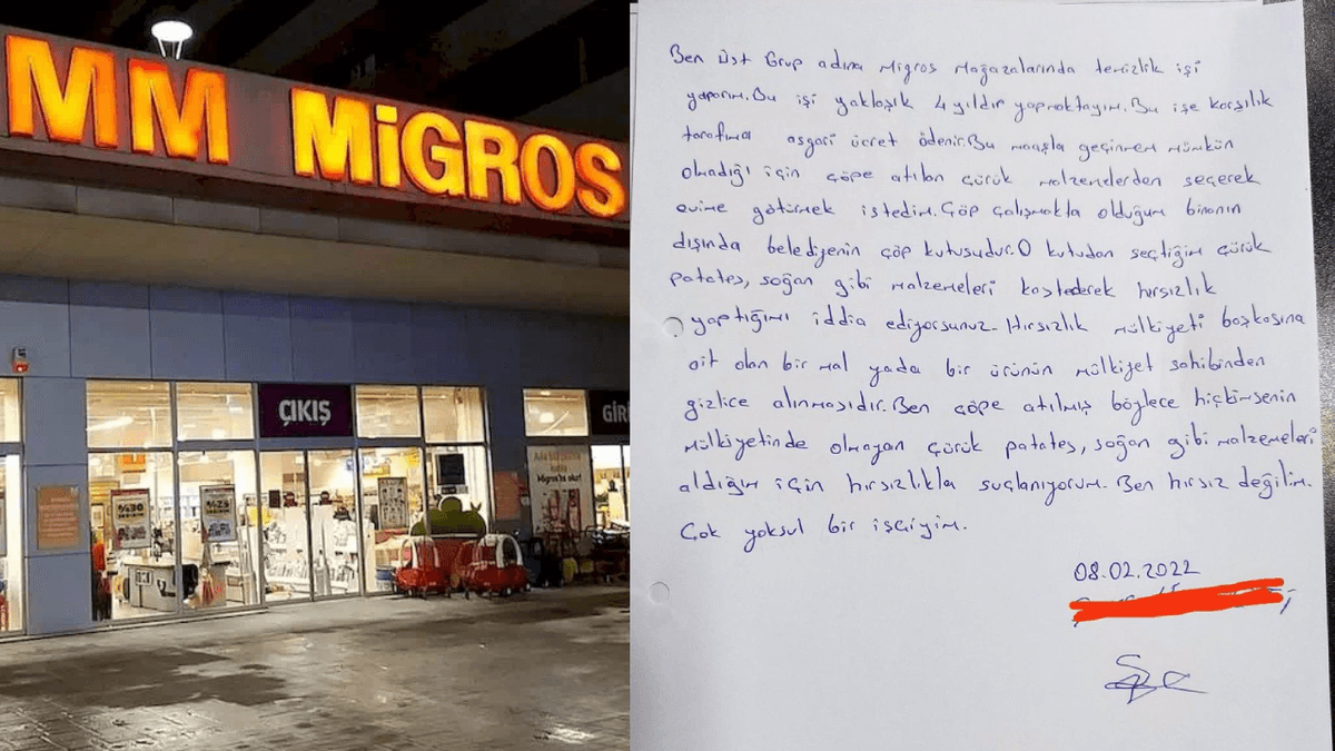 4 yıldır Migros çalışanı olan, çöpe atılmak üzere toplanılan çürük sebzelerden toplayan işçi Miros tarafından "hırsızlık" ile suçlanan işçi, işten atıldı. Bu suçlama üzerine, işçinin savunması alındı, İşten atılan işçinin, yazdığı savunma mektubunda “Hırsızlıkla suçlanıyorum. Ben hırsız değilim. Çok yoksul bir işçiyim” ifadeleri yazılıydı.