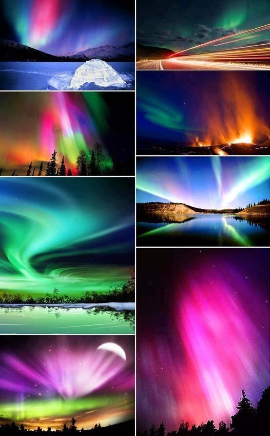 Auroralar çarpıştıkları atomlara ve karşı karşıya geldikleri yüksekliklere bağlı olarak gökyüzünde bizler için inanılmaz bir renk şöleni oluşturuyorlar.