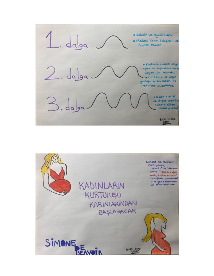 2. dalga feminizmin ve feminist felsefenin öncüsü olan Simone De Beauvoir’ın İkinci Cinsiyet kitabında kullandığı “öteki” kelimesi(kavramı) kadınların birçok alanda eşitsizliğe maruz kalışlarını da ortaya koymaktadır. Simone de Beauvoir bu kitapta kadın nedir, kadını kadın yapan nedir gibi sorulara cevap ararken, kadının ve erkeğin toplum ve toplumsallaşma içerisindeki konumunu da gözler önüne sererek eleştiriyordu. Erkek, aklıyla yani rasyonel düşünen bir varlık, özne gibi insanın kendisine atfedilen zihinsel faaliyetleriyle kavramsallaştırılırken kadın, insan özünde görülen zihinsel özelliklerle(akılcı) değil bedensel özelliklere referansla, ‘erkeğin ötekisi’ olarak görülüyordu. Kadın, anne veya anne olabilir varlık olarak, aklıyla hareket etmek yerine duygusal olan bir varlık olarak öne çıkıyordu. Beauvoir, “kadınların tarihsel bir olay sonucu değil, insanlığın var oluşundan beri sömürüldüğünü ve ötekileştirildiğini” söylemekteydi. İkinci Cins kitabında yine akıllara gelen o sözleri şunlardır 'kadın doğulmaz, kadın olunur. Burada yine toplumsal cinsiyet kavramını temellerini attığını görmek mümkündür.'Kadınların kurtuluşu karınlarından başlayacak' sözünü de yine Simone De Beauvoir söylemiştir. Bu söz feminizm açısından çok önemlidir. Çünkü kadınlar, bedenlerinin erkek denetiminden çıkmasını talep etmişlerdir. Batı’nın doğurganlıkla cinselliğin birbirinden ayrılması için doğum kontrolünün yaygınlaştırılması isteği gündeme getirilmiştir. Tam anlamıyla güvenli doğum kontrol sistemi henüz yaratılmadığı için kadına kürtaj hakkının tanınması, kadının kendi bedeni üzerinde söz sahibi olunması istenmiştir. Bu alandaki mücadeleleri Kuzey Avrupa ve ABD’de etkin olarak devam etmiş, özellikle İngiltere’deki feministlerin mücadeleleri sonucu doğum kontrol uygulaması yasalaşmıştır. Üçüncü dalga feminizm ise çok sayıda farklı feminist faaliyet ve araştırma kolundan oluşur. Feminist olmayı yeniden tanımlaması çerçevesinde "bireysel" bir harekettir. Üçüncü dalga, ikinci dalga feminizmin başarısızlığı olarak değerlendirilen konular arasında kurulan örgütler ve hareketlere tepki olarak ortaya çıkmıştır. Üçüncü dalga feminizm, kadın gibi kadın kavramını eleştirdiği gibi, erkeksiliği ve bununla beraber ikinci dalga feminizmde görmezden gelinen LGBT bireylerin de feminist hareketin bir parçası olduğunu savunur.