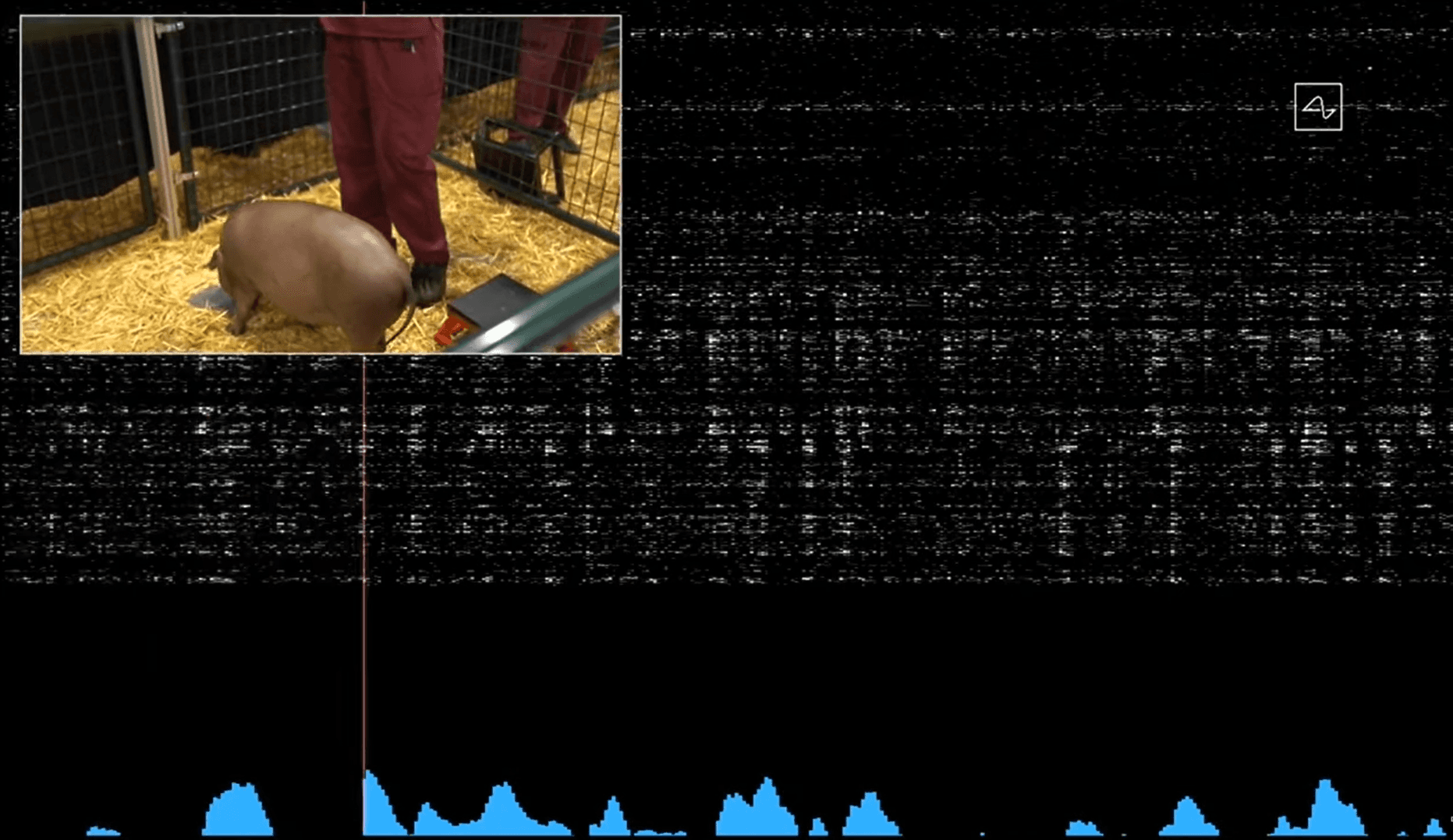 Canlı yayın sadece bu bilgilerle de sınırlı kalmadı. Elon Musk, bu sistemin çalışan bir demosunu "üç küçük domuzcuk" masalına gönderme yaparak domuzlar üzerinde gösterdi. İlk domuzun sinyal olmadan nasıl sağlıklı olduğu gösterildi. İkinci domuzda ise durum daha farklıydı. Çip domuza daha önce yerleştirilmiş fakat çıkartılmış ama domuzun herhangi davranışsal veya sağlıksal bir problemi olmadığı gösterildi. Yani "Operasyonu yaptırırsam ömür boyu çiple mi yaşayacağım?" sorusu cevaplanmış oldu. Üçüncü domuzda ise çip takılı ve kullanılıyor. Bu sayede gerçek zamanlı olarak bir şeyleri kokladığında, ağızını oynattığında, bir şey yediğinde yani beyninde nöronlar harekete geçtiğinde çipin bunu gerçek zamanlı olarak nasıl algıladığını arkadaki ekranda sinyaller şeklinde gösterildi.
