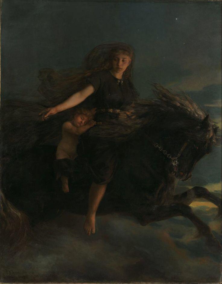 Nótt, geceyi temsil eden karanlık bir tanrıçadır. Gölgelerin içinde sessizce hareket eden bu figür, Ymir’in oğlu Naglfari ile olan birlikteliğinden dünyayı karanlığa sürükleyen "Gece" kavramını yaratır. Atı Hrimfaxi ile gökyüzünde yol alırken, geceyi dünyaya getirir. Nótt, karanlık ama dingin bir gücü simgeler; gözden kaçsa bile her gün güneşin çekildiği o anlarda varlığını hatırlatır. Onun sessiz ve derin varlığı, karanlıkta gizlenen gücü ve huzuru simgeler.