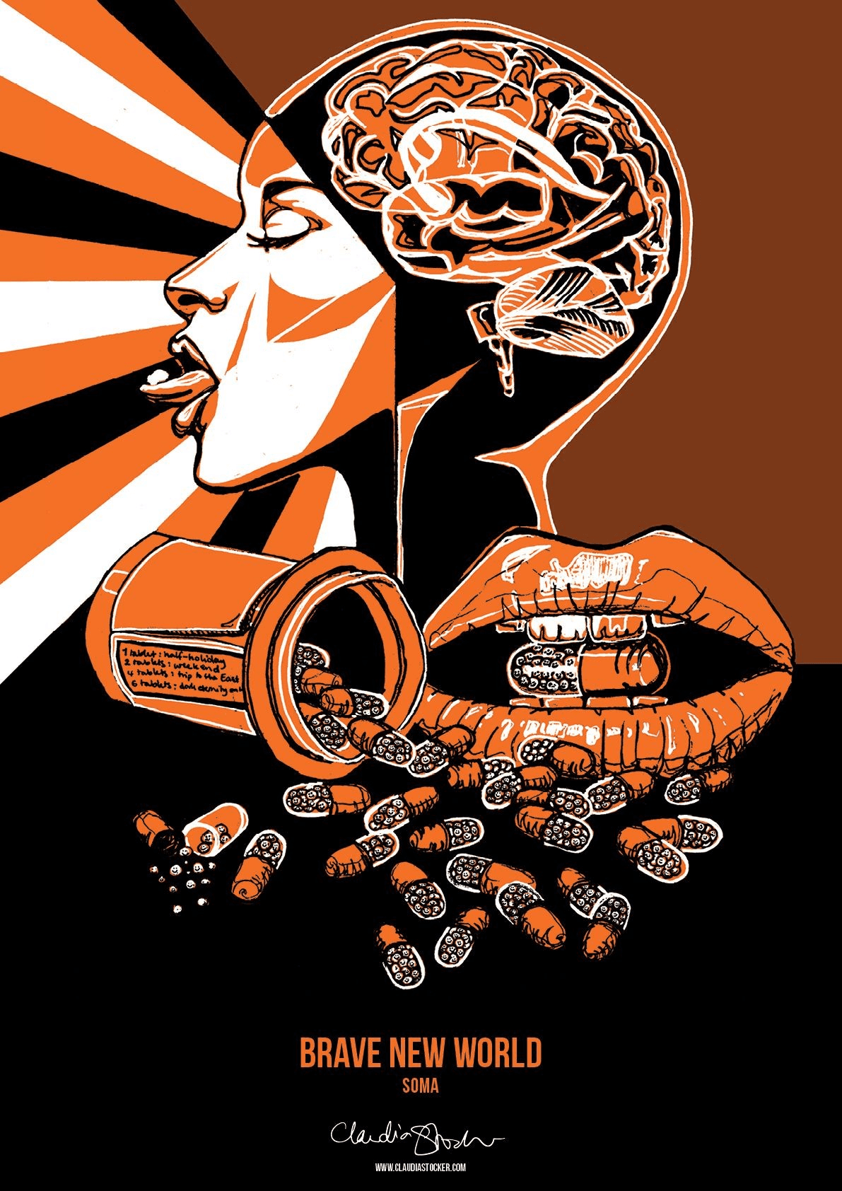 The use of drugs is allowed. A pill called "Soma" is used to maintain happiness and suppress any problems. I believe facing and overcoming problems is important because it makes us stronger.