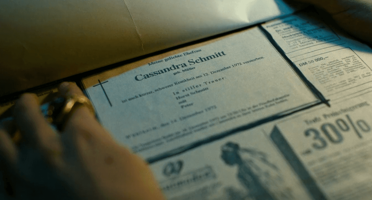 Zamanla Cassandra’nın sıradan bir yapay zekâ olmadığı anlaşılır. Sistem, geçmişte hayatını kaybeden Cassandra Schmitt adında bir kadının dijitalleştirilmiş zihnine dayanır. Cassandra 70'li yıllarda hayatını kaybetmiş, bir erkek çocuk annesi ve işkolik bir bilim insanının eşidir. Dizi boyunca ailesinin itibarını korumak adına akılalmaz eylemlere başvurur, bir cinayeti örtbas etmek gibi. Horst Schmitt, Obb adlı bir sağlık teknolojileri şirketinde bilim insanıdır ve ölümü yenmeye kafasını takmıştır. Mimiklerinden tutun konuşmasına kadar ataerkillik kokan bir karakter bu Schmitt. Karısını aldatan, oğlunu, istemediği ve istenmediği bir alanda zorla çalıştıran korkunç bir karakter ve hikâyenin asıl kötüsü.