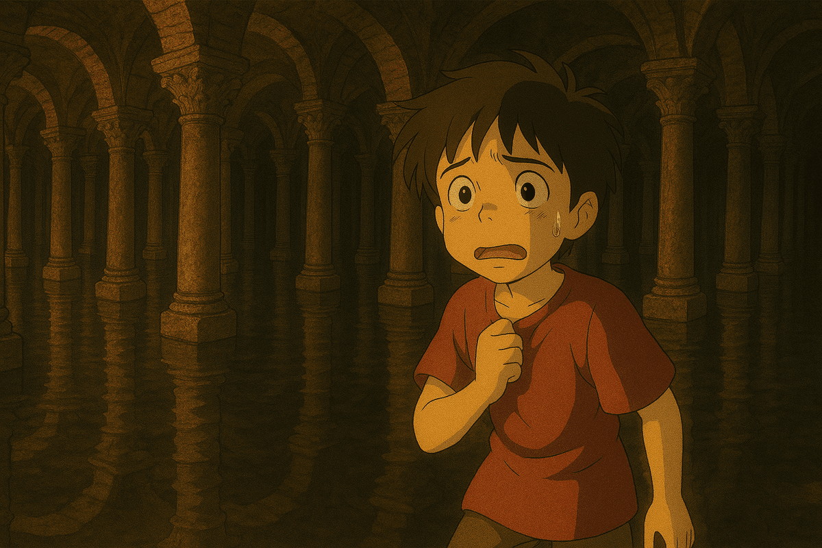 “Işık var içeride ama yine de karanlıkmış, gözlerin alışmadan her yeri göremezmişsin,” diye cevapladı ve arka cebinden bir kitapçık çıkardı. Kapağında T.C. İstanbul Büyükşehir Belediyesi Yerebatan Sarnıcı Müzesi yazıyordu ve arka kapağında da müzenin bir fotoğrafı vardı. Öyle karanlık gözükmemişti çocuğun korkmuş gözlerine, olduğu yerde sağa sola sallanmayı bıraktı bunu görünce. Ağabeyi sarnıçla ilgili bilgiler sesli okumaya başlamıştı ki birazdan okuduğu şeyler yine kardeşini korkutmak için uydurduğu masallara dönüşecekti. Kardeşinin meraklı gözlerine göz ucuyla bakıp sırıttı ve okuyormuş gibi yapmaya başladı. “Dikkatli olmaya özen gösterin, kolonların etrafında dolaşan balıklar sudan fırlayıp ziyaretçilerin kollarına yapışabilir. Karanlıktan uzak durun, ışıkların altında dolaşın, karanlıkta dolaşan cinlerden, uzun bacaklı örümceklerden ve yarasalardan uzak durun...” devam ediyordu ki babası kitapçığı oğlunun elinden alıp kafasının arkasına hafifçe vurdu. “Korkutma kardeşini eşşek herif, uğraştırma beni,” dedi.