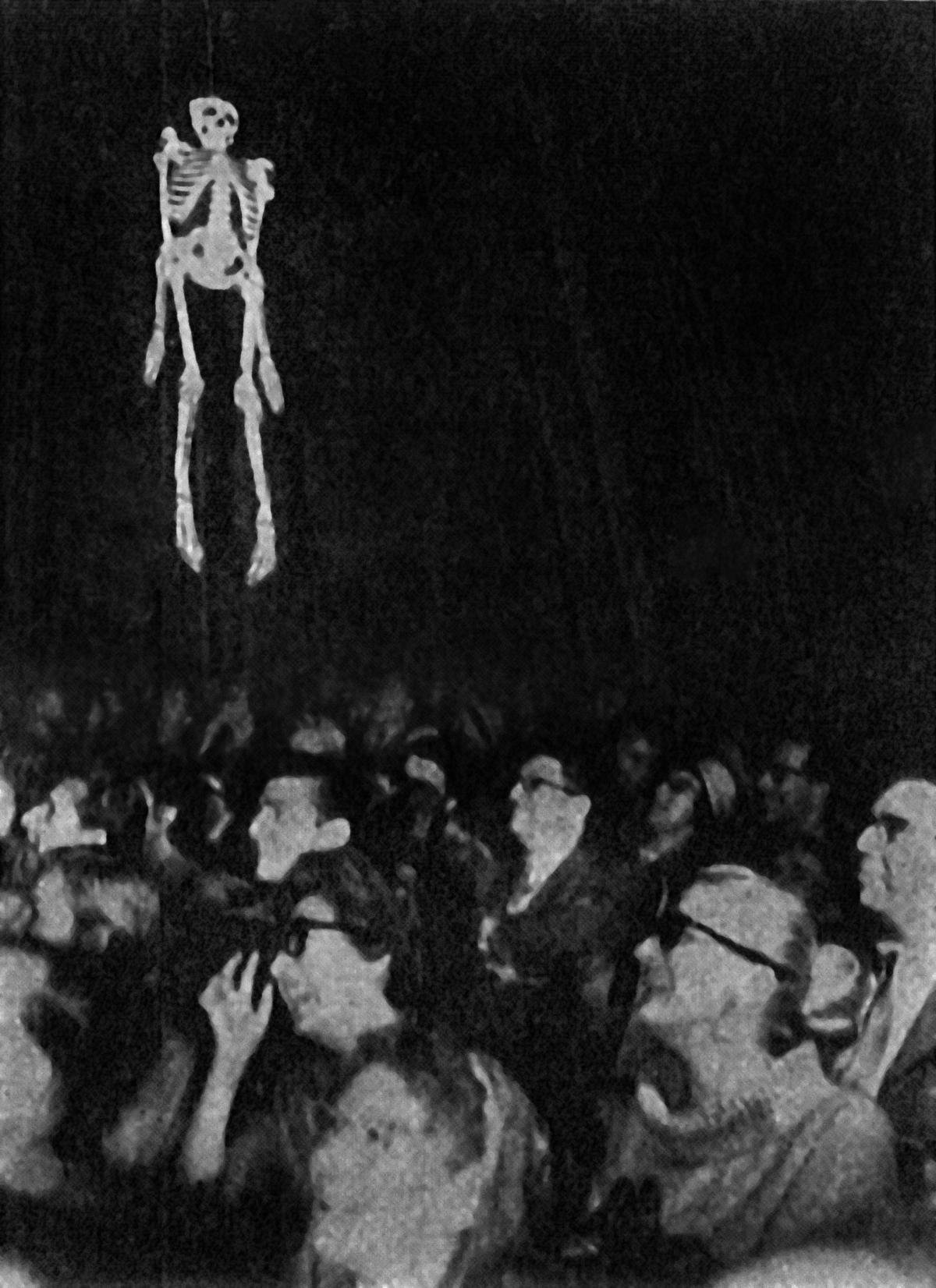 Konusuna baktığınızda sıradan sayılabilecek bir korku filmi değil mi? Tabii ki öyle fakat Castle'ın bu filmini farklı yapan, sinema salonuna kurdurttuğu düzenektir. Filmin doruk noktasında, korkunun tavan yaptığı bir sahnede ve hikayeye de uygun bir şekilde tavandan seyircilerin üstüne doğru bir iskelet sallandırır.