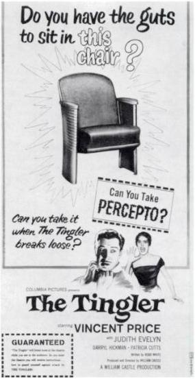 Castle 'percepto' adını verdiği bir cihaz tasarlamış ve bu cihazları salondaki sinema salonundaki koltukların altına yerleştirmiştir. Bu cihaz gerektiği yerlerde seyirciyi titreterek korkmasına ve çığlık atmasına sebep olmuş. Tabii asıl kullanıldığı yer filmin son sahnesi olmuştur. Baya bir titretmiş yani seyirciyi. Filmin başında bahsettiği 'fiziksel reaksiyon' budur.
