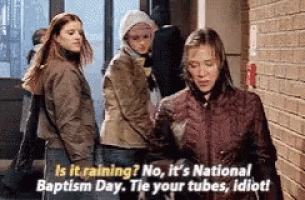 8. "Yağmur mu yağıyor?" "Hayır, Ulusal Vaftiz Günü; tüplerini bağla, aptal." —Paris Geller