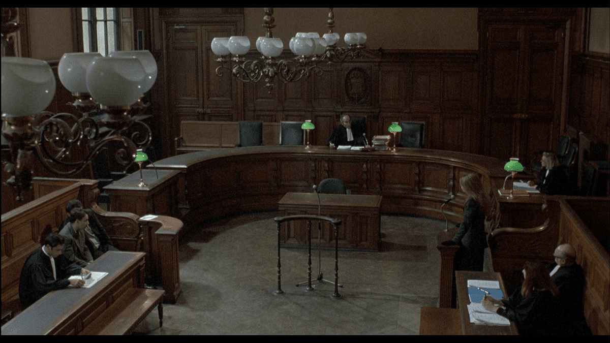 Eğer Mavi filmi bu serinin trajedi filmi ise Beyaz filmini bu serinin komedi filmi olarak görebiliriz. Biraz trajikomik bu film, bir mahkeme sahnesi ile açılışı yapmaktadır. Karol ve eşi Dominique'in boşanması davasıdır bu. Bu sahnenin seri için önemi ise Kieślowski evreninin kesişmelerinden biri de bu sahnededir. Mavi filminden tanıdığımız Julie, yanlışlıkla bu mahkeme salonuna girer ve görevliler tarafından çıkartılır. Eğer geçmişe dönersek Julie'nin eşinin onu aldattığı kadını görmek için adliyeye geldiğini hatırlayabiliriz.