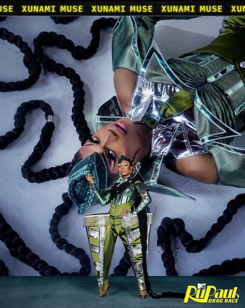 Xunami Muse: Xunami is a 34-year-old Panamanian who joins the competition from New York. She is the second contestant from Panama after Serena ChaCha (Season 5 & All Stars Season 6). She is Kandy Muse's (Season 13 & All Stars Season 8) drag daughter from Haus of Muse, which makes her the granddaughter of Aja (Season 9 & All Stars Season 3), and niece of Dahlia Sin (Season 12).