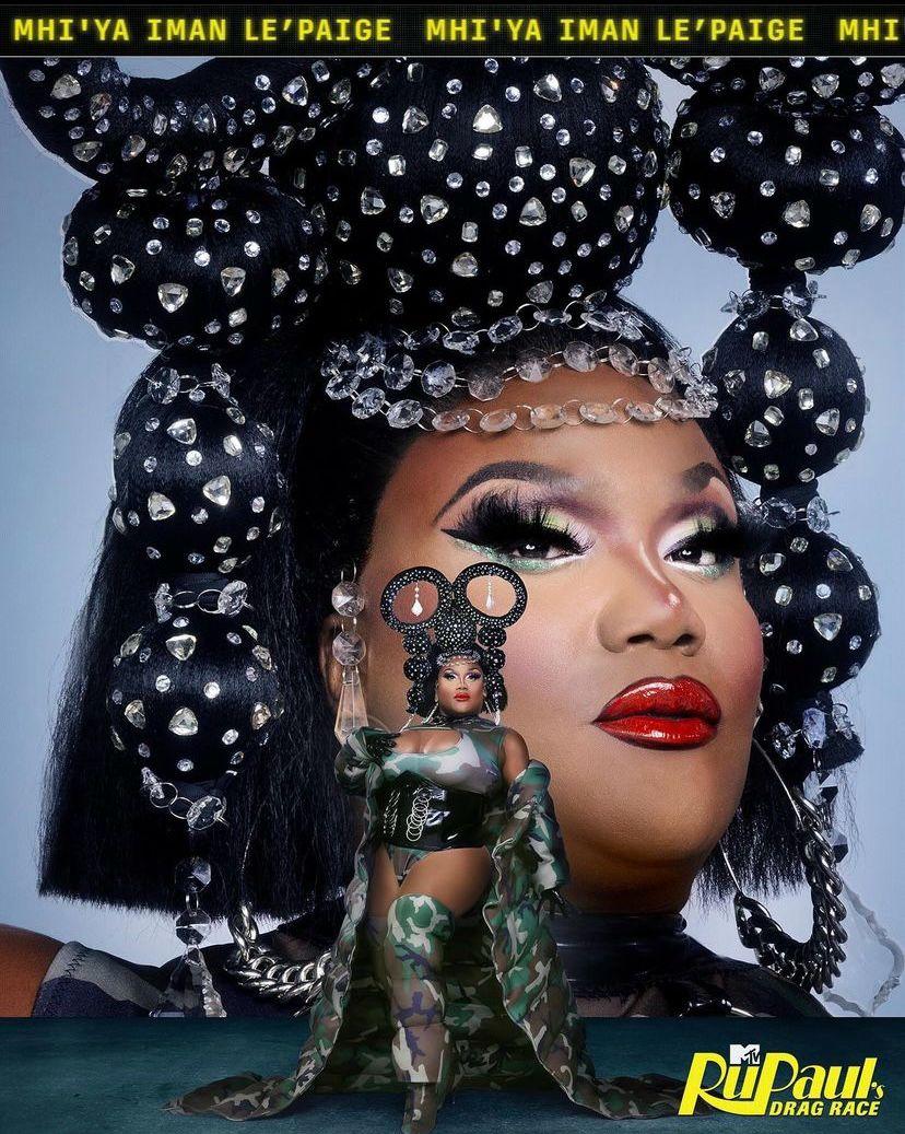 Mhi'ya Iman Le'Paige: Mhi'ya is a TikTok sensation who joins from Miami. She is 35, Haitan-American, and Tamisha Iman's (Season 13) granddaughter. She is also the drag daughter of Kennedy Davenport (Season 7 & All Stars Season 3).