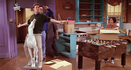 1)Monica ve Rachel'ın evlerinin kapısında gördüğümüz ikonik sarı çerçeve aslında bir aynaymış. Ancak ilk bölümlerin çekimleri sırasında bir set çalışanı tarafından yanlışlıkla kırılınca atmak yerine o şekilde kullanmak istemişler. Bu sayede tesadüfen ikonik bir eşya haline geldiğini söyleyebiliriz.