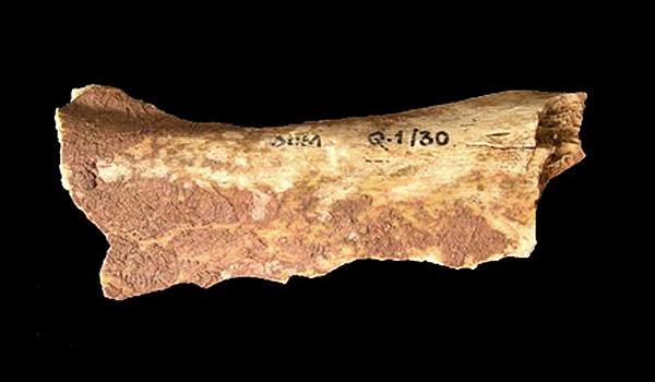 Görsel: Paviland Cave'deki gömüde üzerinde kırmızı aşı boyası kalıntıları bulunan iskelete ait kemiklerden biri (www.bradshawfoundation.com)
