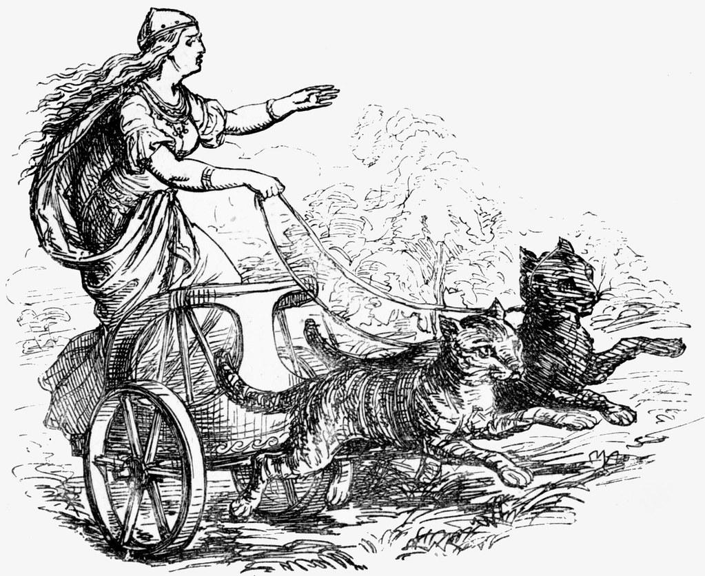 Çizim: Tanrıça Freya ve kediler tarafından çekilen arabası