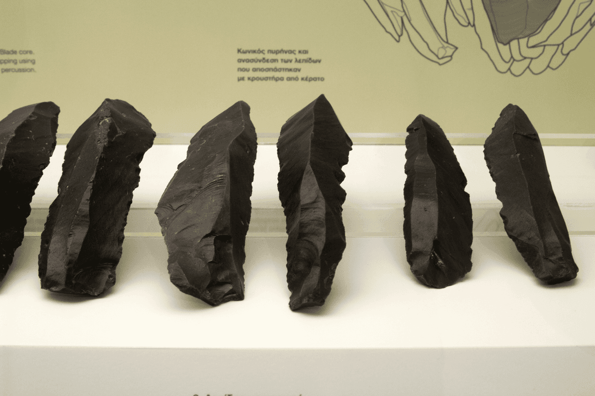 Photo: An assemblage of Early Cycladic obsidian blades from Milos, Greece (retrieved from Zde, CC BY-SA 4.0 https://creativecommons.org/licenses/by-sa/4.0, via Wikimedia Commons)