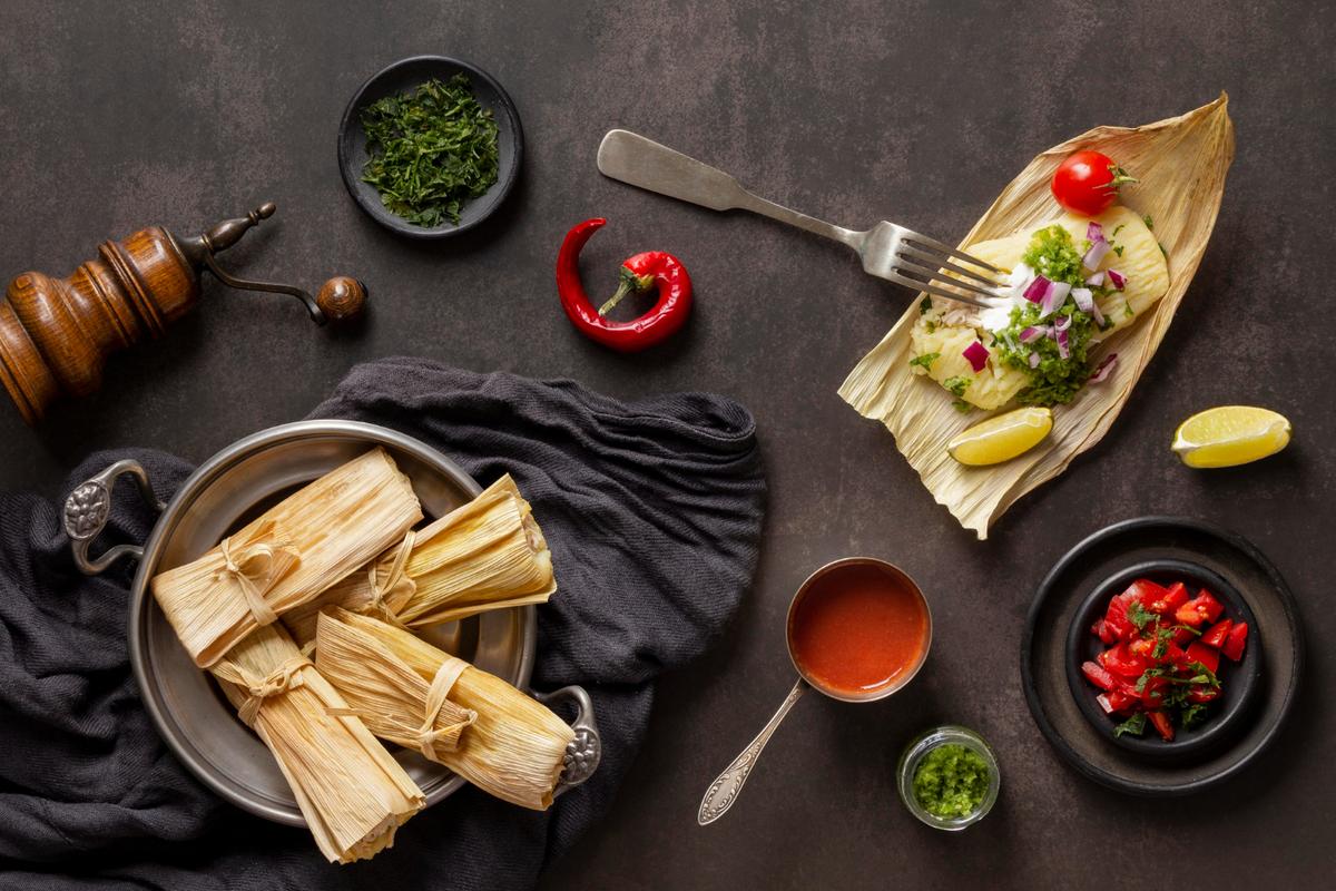 Meksika mutfağı; genellikle mevsimlik sebzeler, taze otlar, meyveler ve mısır gibi temel ürünlerle hazırlanan yemeklerden oluşur. Mutfağın vazgeçilmez bir bileşeni olan mısır; tortilla, taco, tamale gibi çeşitli yemeklerin temel malzemesidir.