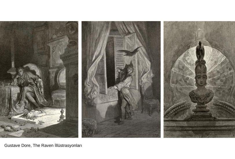 Birçok sanatçının eserine de konu olan “The Raven” Edouard Manet, Gustave Dore gibi sanatçıların illüstrasyonlarında işlenir.