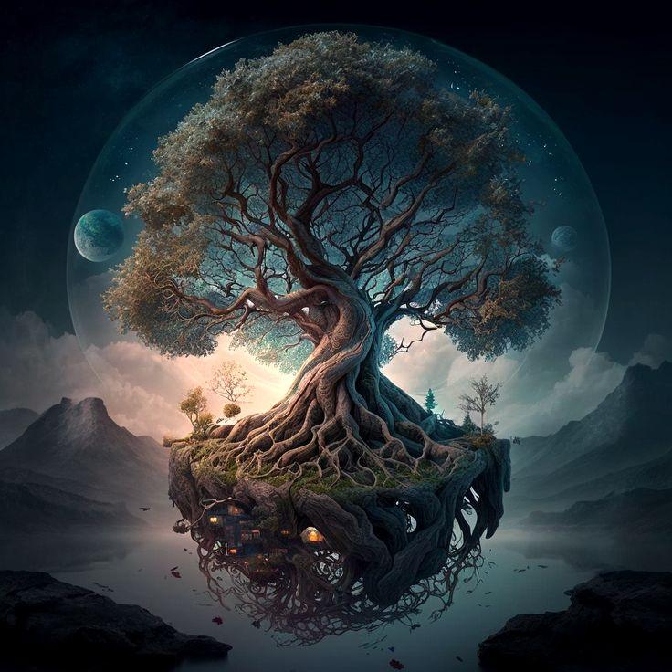 There's a place in the south called Muspell that is filled with flames and a place in the north called Niflheim that is filled with blocks of ice. At the center of these two places lies a spring called Hvergelmir, which is the source of eleven other springs. Between these two realms, there is a void called Ginnungagap, and the rivers that sprang from Hvergelmir drowned into that void. These two elements from two different realms streamed into the same place, and in time, they combined to create a life form, which was the frost giant, Ymir. While Ymir was sleeping, he started to sweat, and from that sweat, he fathered men and women under his armpits and the back of his knee. Then the ice in Ginnungagap melted and created a cow called Audumla. Ymir fed on her, and she also created the first man at the end of the third day by licking a block of ice. The man was called Buri. He had a son called Bor, and he married Bestla, and they had three children: Odin, Vili, and Ve. These three children did not like Ymir because he was a giant, and giants were evil due to their nature. Soon after, their hatred grew, and they attacked and killed Ymir. The blood that came through his wounds caused a flood, and all the frost giants (except for two) drowned. After the death of Ymir, three sons of Bor created the realms from the scrapes in Ymir's body. Odin, Allfather, assembled all of the gods and goddesses, put Asgard (the realm of the Aesir) on top, and put Bifrost (the rainbow bridge) between Midgard (the realm of humans, the Earth) and Asgard. The sacred tree known as Yggdrasil connects all of these realms, and it will remain that way until the serpent/dragon Nidhogg consumes its roots.