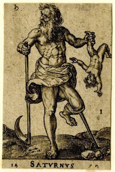 Halkalı gezegen Satürn, adını bir tanrıdan değil, bir titandan almıştır. Titanlar, Gaia ve Uranüs’ün yani Yeryüzü ve Gökyüzü’nün çocuklarıdır. Gaia’nın doğurduğu titanların en küçüğü olan Satürn (Antik Yunan’da Kronos) zamanı yöneten titandır. Babası Uranüs’ün beğenmediği kardeşlerini annesinin karnına geri tıktığını gören Satürn, annesi Gaia’nın da desteğiyle babasını orakla hadım eder ve kardeşlerini annesinin karnından çıkarır. Böylece titanların başına geçer. Ardından başta Satürn’ün oğlu olan Jüpiter olmak üzere tanrılar, titanlara karşı gelir ve Satürn’ü tahttan indirirler. Satürn aynı zamanda adını İngilizcede cumartesi (Saturday) gününe vermiştir. Türkçe'de ise Satürn’e Zühal adı verilir.