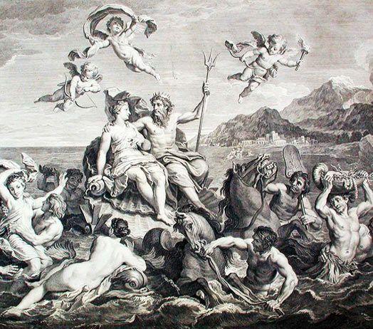 Gezegenin mavimsi renginden yola çıkılarak bu gezegene Roma mitolojisindeki denizler tanrısı Neptün’ün adı verilmiştir. Yunan mitolojisindeki Poseidon'a denktir. Poseidon Kronos'un oğlu ve Zeus'un kardeşidir. İnanışa göre titanların yenilmesinin ardından üç büyük tanrı evreni aralarında paylaşmıştır. Gökyüzünü tanrıların kralı Jüpiter, yeraltı dünyasını Plüton alırken denizlere ise Neptün sahip olmuştur. Genellikle mızrağı ile tasvir edilmiştir.