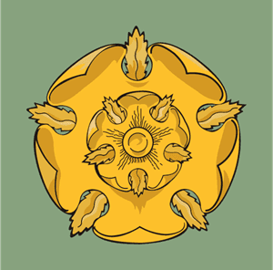 Bu hanedanın sembolü kırmızı-mavi zemin üzerine gümüş alabalıktır, sloganları "Aile, Görev, Onur" sözüdür.