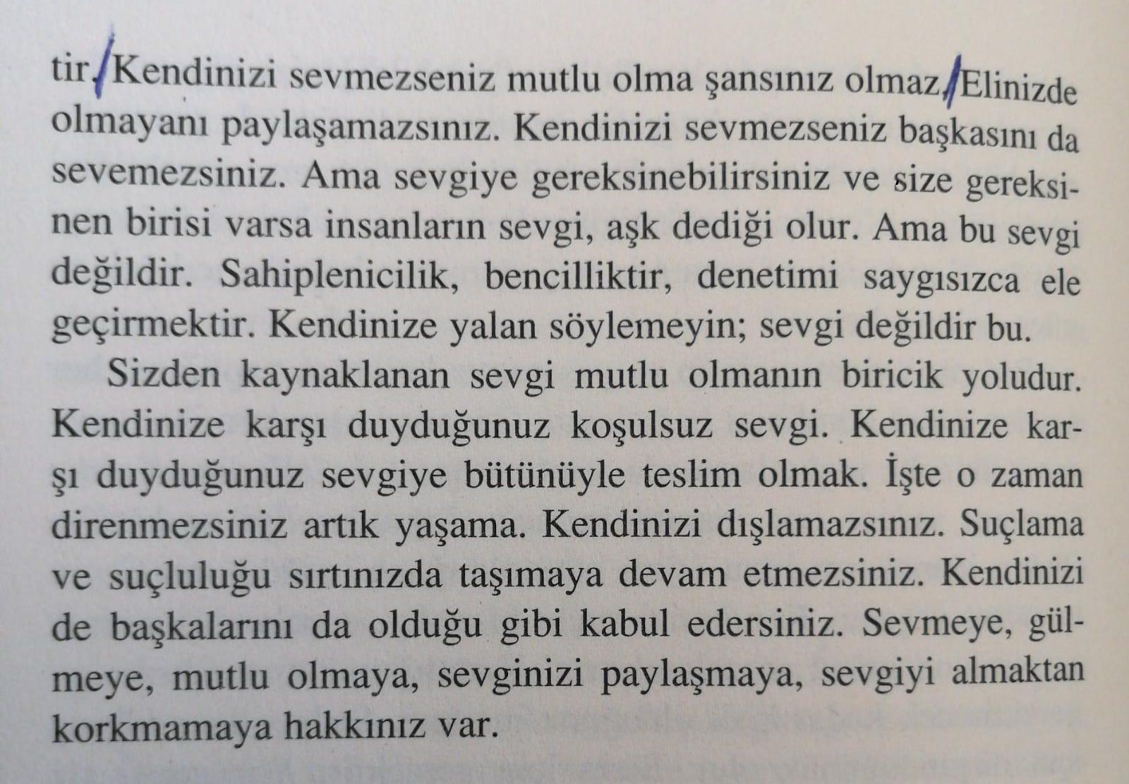 Don Miguel Ruiz, çok güzel anlatıyor öz sevgiyi, şefkati. Nasılını öyle güzel tarif ediyor ki tarife uygun sonuçlar elde edeceğinize kuşkum yok. Ben başka kitaplarını okumaya başladım bile. Size son notum, kimsenin sizi sevgi adı altında eleştirmesine size saygısızlık yapmasına izin vermeyin. Siz biriciksiniz ve kime sevginizi sunmak isterseniz bunu cömertce yapmalısınız ama önce kendinize. O halde Don Miguel'e kulak verelim