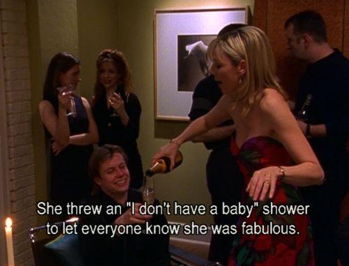 - Of course, she would do the most Samantha Jones thing she could do: Throwing an '' I don't have a baby'' shower. In a world where many men can't stand a woman who knows her worth and tries to make us feel like we are worth less, Samantha did not let that get into her. This woman never stepped down and she was unapologetic and always knew her worth.