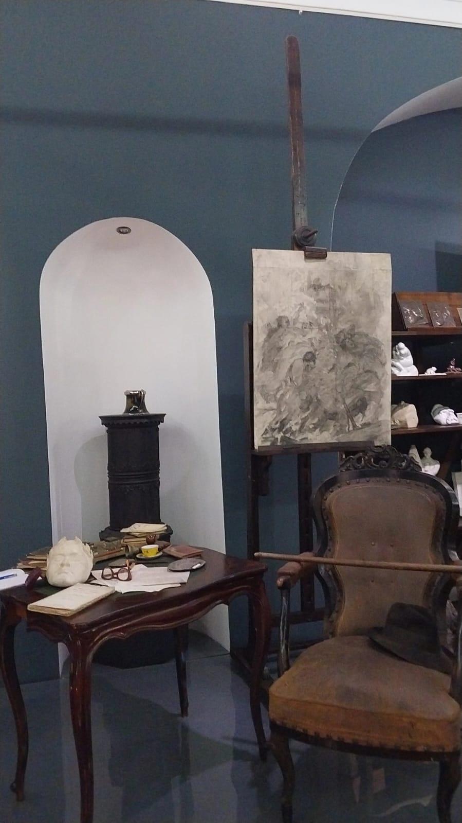 Resim galerisinin ilk odasına girdiğimde bulunduğum karanlık, ressamının üzerinde resim yaptığı bir masa, fırçaları, boyaları ve odasındaki diğer malzemelerden oluşan bu bağımsız film sahnesini andıran portre, galeriyel dramatik bir başlangıç yapmak için idealdi. Diğer odalara ilerlediğimde duvarlarda ressamın biyografisini anlatan tabloları inceledim. Hemen yanlarında bulunan birçok eser ise insan yüzlerinden oluşuyordu. Donuk bakışlı, endişeli, bıkmış pek çok insan çeşitli yerel sanatçıların fırçasında bir anı olmalıydı.