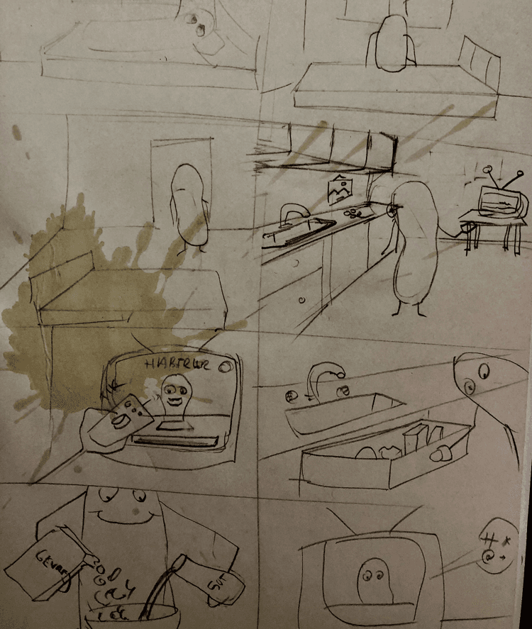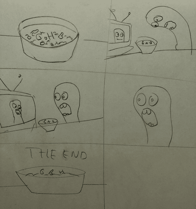 Organik tipografi denemeleri yaparak başladığımız bu süreçte bizden beklenen oluşturduğumuz organik tipografilerle bir senaryo oluşturmak ve storyboardını çıkarmak akabinde de bir stop-motion oluşturmaktı.
