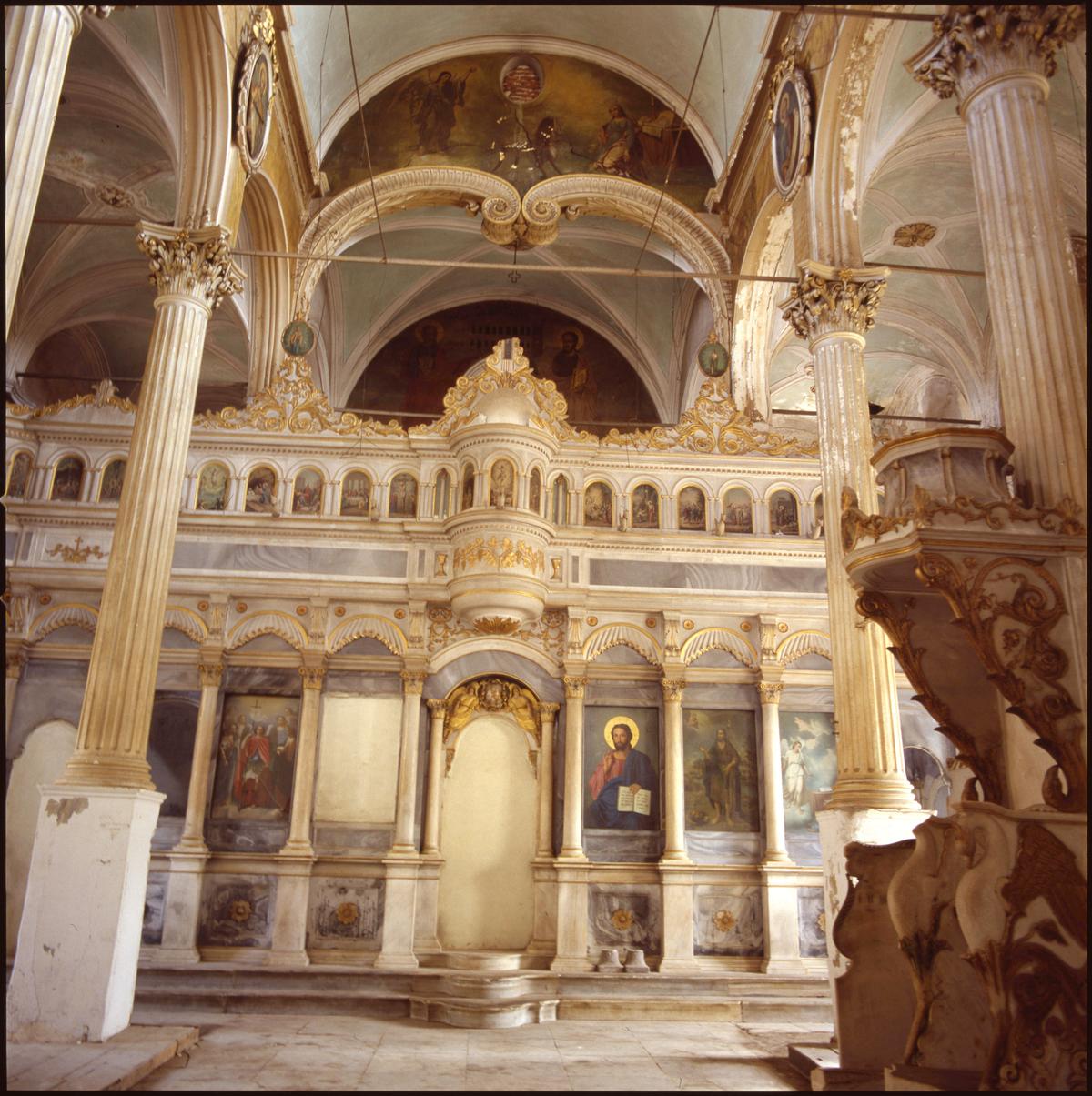 Kilisenin kutsal eksedra alanını, cemaatin girebileceği Naosdan ayıran duvardır. Duvardaki kısımlarda; En yukarısındaki bölümde Hz. İsa'nın İncil'de geçen menkıbeleri zaman çizelgesi içermeyecek şekilde resmedilmiştir. Alt kısmında ikonastasinin ana kapısının sağında Vaftizci Yahya tablosu solunda Hz İsa tablosu, Hz. Meryem'e müjde tablosu, baş melek ve melekler ordusu tabloları yer alır.