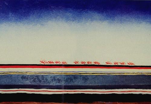 Atlıların bir ovada koşturmasını konu alan ''Red Cavalry''nin alt zemin renk şeritleri süprematist tarza aittir.