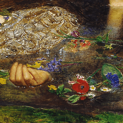 Ophelia, Danimarka prensi Hamlet’e âşık genç bir kadındır. Ancak aşkı karşılık bulmaz ve aynı zamanda babası Polonius, Hamlet tarafından yanlışlıkla öldürülür. Peş peşe gelen bu trajediler, onun akıl sağlığını yitirmesine neden olur. Doğaya sığınan Ophelia, bir nehirde boğularak hayatını kaybeder. Bazı yorumcular, onun ölümüyle ilgili “kaza mı, intihar mı?” sorusunu da tartışır. İşte Millais, tam da bu anı, doğanın ortasında dondurarak ölümsüzleştirmiştir.