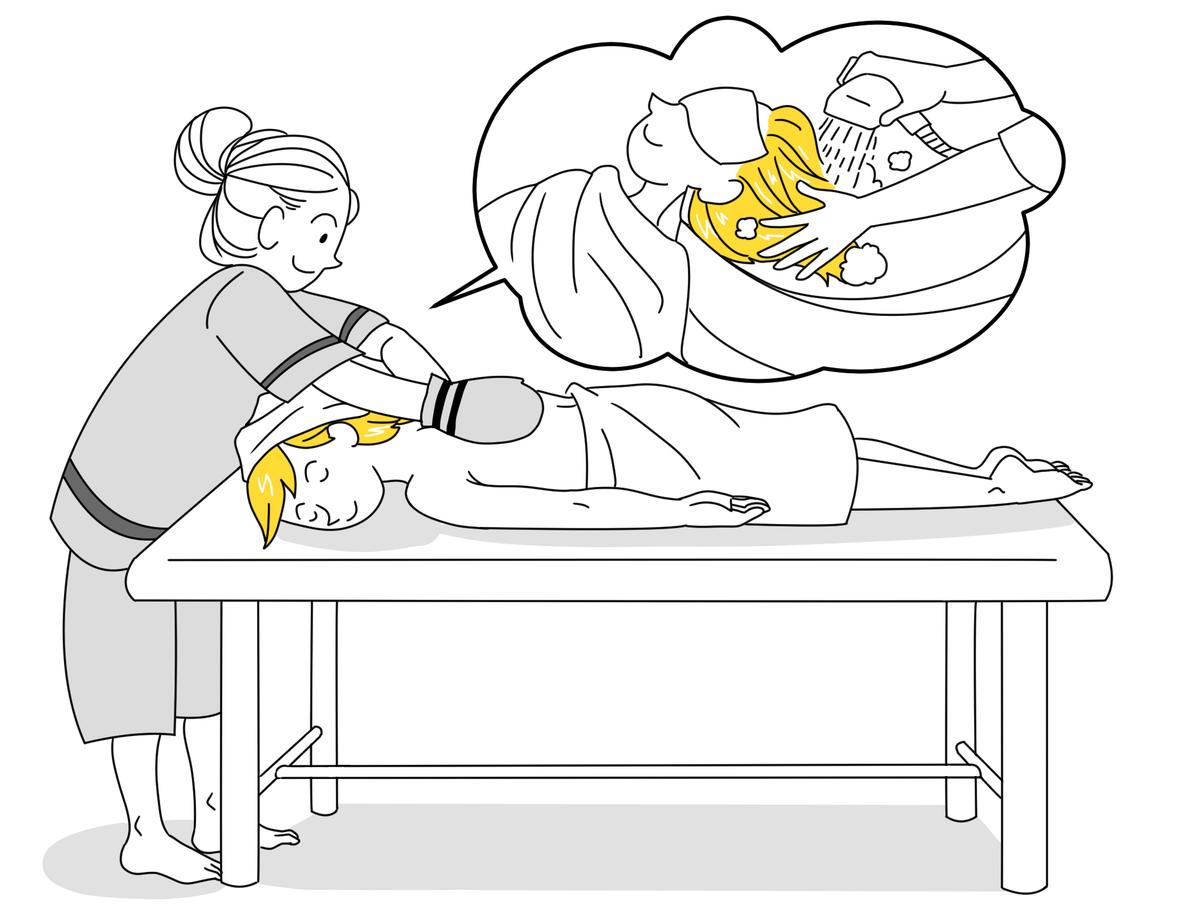 Seshin is the practice of scrubbing off dead skin, usually done by a Seshin worker. In a Jjimjilbang, you soften your skin in warm water beforehand so that the dead skin can be scrubbed off easily.