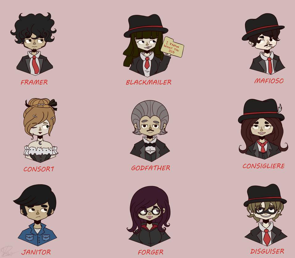 When we get to the Mafia Roles, three subcategories go like this; Mafia Deception, Mafia Killing, and Mafia Support. Mafia Descepiton consists of a Disguiser who disguises a mafia member as a non-mafia member to alter their identity, a Forger who chooses a person and rewrites their last will and role at night, a Framer who chooses one person to frame each night, a Hypnotist mo can sneak into players house at night and plant a memory, and a Janitor who chooses a person to ''clean'' each night. Mafia Killing consists of an Ambusher who can choose to lie in wait outside the target's house, a Godfather who kills someone each night, and a Mafioso who carries out the Godfather's orders. Mafia Support consists of a Blackmailer who chooses one person each night to blackmail, a Consigliere who checks one person for their exact role each night, and a Consort who distracts someone each night.