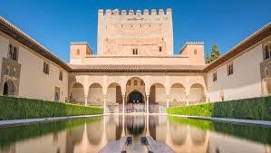 Endülüs Emevileri'nin son kalesi olan Granada, nar anlamına gelen Gırnata kelimesinden türemiştir. El Hamra Sarayı mimari olarak incelediğinde büyük detaylarla ve inceliklerle inşa edildiğini görmekteyiz. Bir rivayete göre El Hamra Saray'ını inşa eden işçiler sabahları saraya giderken abdest alırlardı. Bu ince detayları Müslümanların çok önem verdiği bir detaydır. Sarayda sütunlar, kemerler, revaklar kullanılmıştır. El Hamra Sarayı'nın yapımı bittikten sonra İspanya kralı V. Carlos sarayın mimarisinden ve güzelliğinden etkilenerek sarayın bahçesine kendi adını taşıyan bir saray inşa ettiriyor.