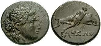 "Şu gördüğünüz üzerinde iyi düşünün. İşte gerçek dostluk budur. Birlikte oynarken yüzgecinin boynunu kestiği Hermiyas'ın ölümü, bu yunusu da ölüme götürmüş. O, dostunu hiçbir koşulda yalnız bırakmamış. Yaşamda da, ölümde de birlikte olmayı yeğlemiş." demiş. Halk bundan çok etkilenip paraların arkasına yunus ve çocuk yontmasını yapmışlar.