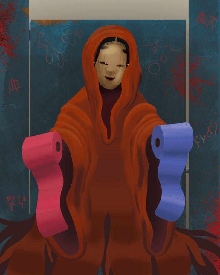 Hanako-san'ın yanında başka bir hayalet daha vardır ve onun adı da Aka Manto'dur. Aka Manto, kırmızı pelerin giyen ve halka açık veya okul tuvaletlerini kullanan insanlara görünen maskeli bir ruh hakkındaki bir Japon şehir efsanesidir. Efsanenin anlatımları değişiklik gösterir, ancak hikayenin tutarlı bir öğesi, ruhun tuvalet sakinine bir soru sormasıdır. Bazı versiyonlarda, kırmızı kağıt mı yoksa mavi kağıt mı istediklerini sorar ancak diğer versiyonlarda seçimler kırmızı pelerin veya mavi pelerin veya kırmızı pelerin veya mavi pelerin olarak belirtilir. Bu seçeneklerden herhangi birini seçmek, bireyin öldürülmesiyle sonuçlanacaktır, bu nedenle birey hayatta kalmak için ruhu görmezden gelmeli veya her iki seçeneği de reddedip kaçmalıdır.