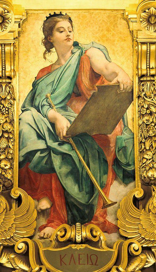 Antik çağ yazarları tarafından genel olarak takip edilen Hesiod'un anlatımına göre Dokuz İlham Perisi, Zeus ve Mnemosyne'nin dokuz kızıydı; özellikle şiir, edebiyat, dans ve müzik olmak üzere bilgi ve sanatların kişileştirilmiş hali olarak tasvir ediliyorlardı.