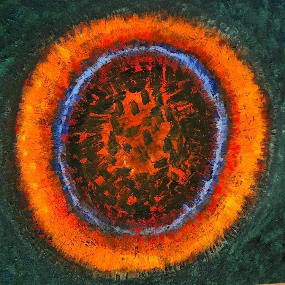 The third painting reminded me of two different things. The first was the layers of the Earth, and the second was the inner image of the melon, even though it was a bit unrelated. I don't know why, but when I first looked at it, the image of the melon echoed in my brain, but when I stopped for a few minutes and looked at the painting again and again, I realized more clearly that it reminded me of the layers of the Earth. Although this painting is also called abstract, I can say that I like it because it seems realistic to me. I especially loved the green tone used in the background. Since green is among my favorite colors, I can say that the color used in the background of this painting provides integrity. Bright and vibrant colors were preferred. In general, I think it is a successful painting.