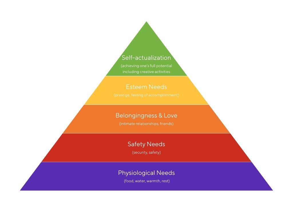 Maslow’un ihtiyaçlar piramidi, beş temel ihtiyaç seviyesinden oluşur: