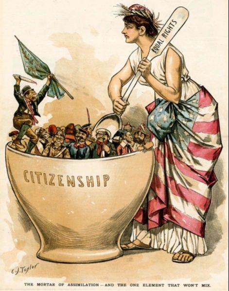 Melting Pot: A metaphor for a place where different people exist together with their culture but later mix and reduce a new nation. The process is from heterogeneous to homogeneous. They begin sharing a common culture. They use this term for the USA.