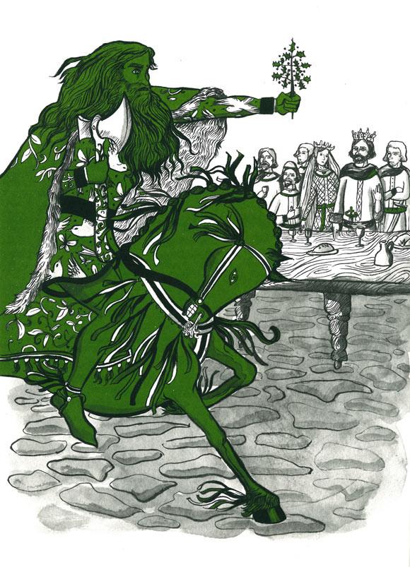 The Green Knight challenges Arthur and ultimately defeats Gawain.