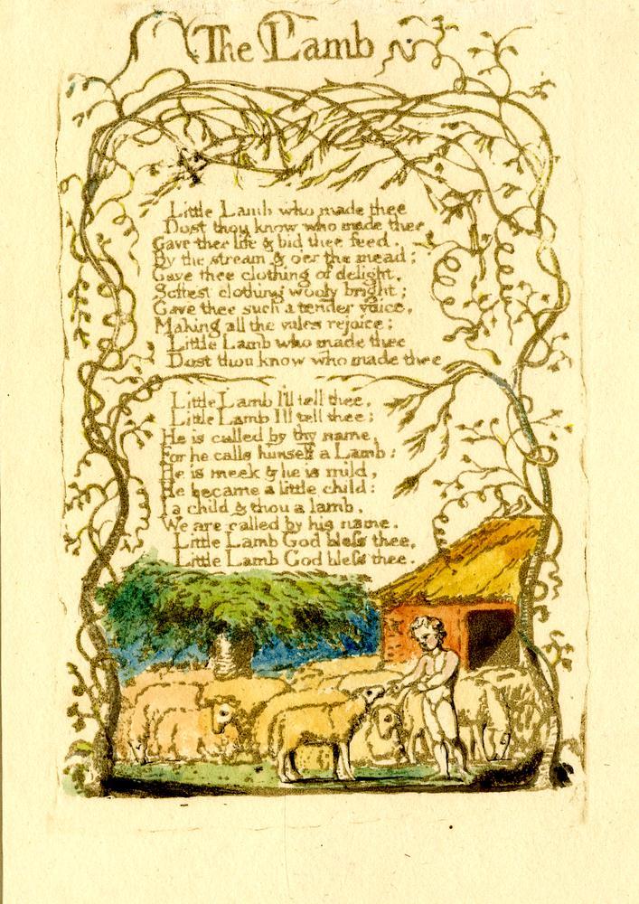 The language is so childish, and smooth in the poem. He asks direct and simple questions. Blake is not raising the bar in terms of language but in terms of the questions that the poem asks. This poem is also about creation but with a simple diction and simple symbolism. In the first stanza, he is asking primary questions but these are rhetorical questions because in the second stanza, we see that he already knows the answers. So the answer to the question of 1st stanza is Christ. Christ the lamb who created the lamb. Jesus Christ is called the lamb of god. Lamb is a sacrificial animal and Christ sacrificed himself for humanity, based on this belief he is assumed as the representation of innocence. So the line “for he calls himself a lamb” means the creator is also called a lamb and he created you. It is a reference to the Trinity, to the Jesus. We have descriptions of the creator in the lines; “he is meek, & he is mild; /he became a little child. /i a child, & thou a lamb, /we are called by his name.” He is praising the lamb, it is a beautiful creature, by doing so he is also praising the god. Lamb is an innocent creature, Christ is also innocent so this poem is from the Songs of Innocence. Blake brought all these ideas here with a question-and-answer structure. When the speaker addresses an absent person, object, or animal, it is called an apostrophe; this poem is an example of it. The speaker is a child, it is obvious from the diction, syntax, and repeating words. This child is also a representative of innocence. The words are soft and warm for example lamb, mild, meek; all of the positive words.