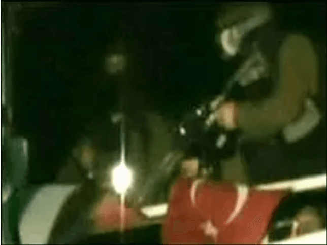 “Telsiz muhaberesi 31 Mayıs günü saat 02.00’ye kadar devam etmiştir. Saat 04.30 civarı İsrail donanmasına bağlı askerler Zodyak botlar ile Mavi Marmara gemisine çıkma girişiminde bulunmuşlardır. Bir grup bot, hem sancak taraftan hem de iskele taraftan gemiye yanaşmış, İsrail askerleri gaz bombaları, şok edici el bombaları, göz yaşartıcı bombalar atmışlardır. Bu esnada gerçek fişeklerle ateş edildiği iddiası da öne sürülmektedir. Rüzgârın etkisi ile atılan gaz bombaları tesirini göstermemiştir. Askerlerin botlarla gemiye yanaşıp merdiven atma girişimleri de yolcular tarafından engellenmiştir. Botlarla gemiye çıkış mümkün olmayınca birkaç dakika sonra helikopter ile geminin üst güvertesine asker indirilmek istenmiştir. Bu sırada üst güvertede 10-20 yolcu bulunmaktadır. Helikopterden atılan ilk halatı yolcular üst güverte üzerinde bir yere bağlayarak bu ilk girişimi sonuçsuz bırakmışlardır. İkinci deneme öncesi askerlerin gerçek fişeklerle gemi güvertesine ateş açtığı heyet tarafından tespit edilmiştir.”